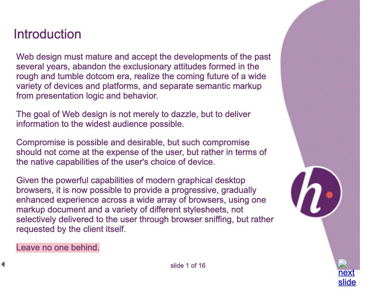 @_GobiTodic @excalidraw It's from a recent talk that I gave: docs.google.com/presentation/d/1PV0VN5S0Evc5ndvC4gYOxiRAuwWqZUOhEEjEeSbSH9A/edit#slide=id.g96d3cecbf3_0_17 (slide 6). It was _literally_ on slide 1 of the original Progressive Enhancement deck (hesketh.com/publications/inclusive_web_design_for_the_future/).