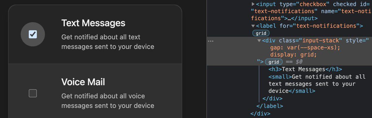 There's the uncanny valley of the grid gap being not clickable (despite being in the label) [first screenshot]). I have fixed it by rotating the order in the DOM [second screenshot].