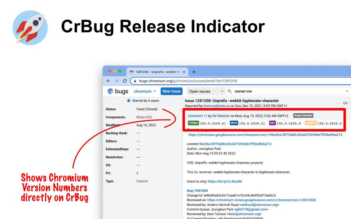 chrome.google.com/webstore/detail/crbug-release-indicator/ppbnemgliamfnlhhnclbibcpbnfdclnn