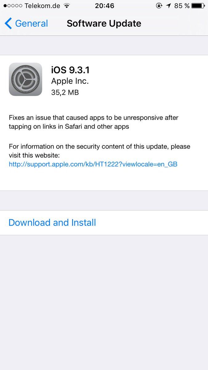 Apple have released iOS 9.3.1 that fixes the link bug. Ironically enough froze when clicking