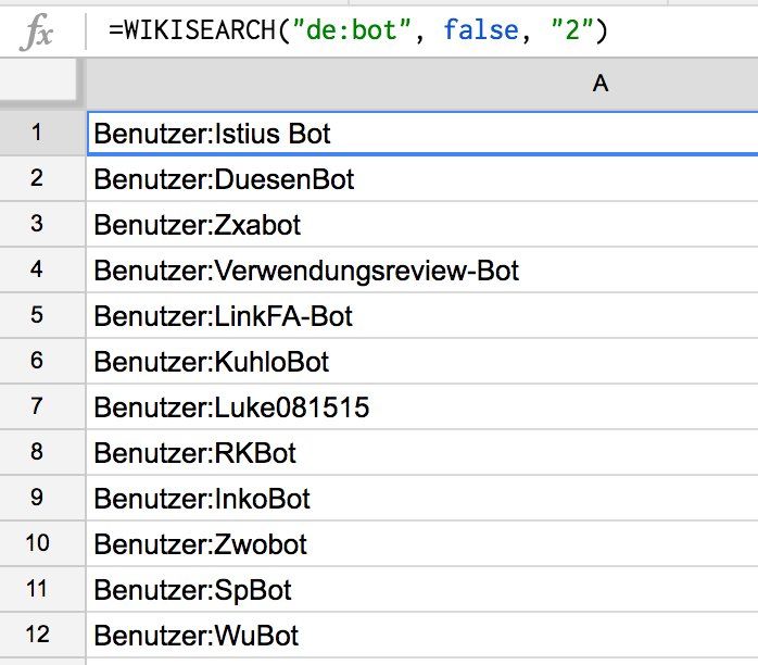Added namespace support to Wikipedia Tools, e.g., German user pages (ns: 2) containing "bot"—