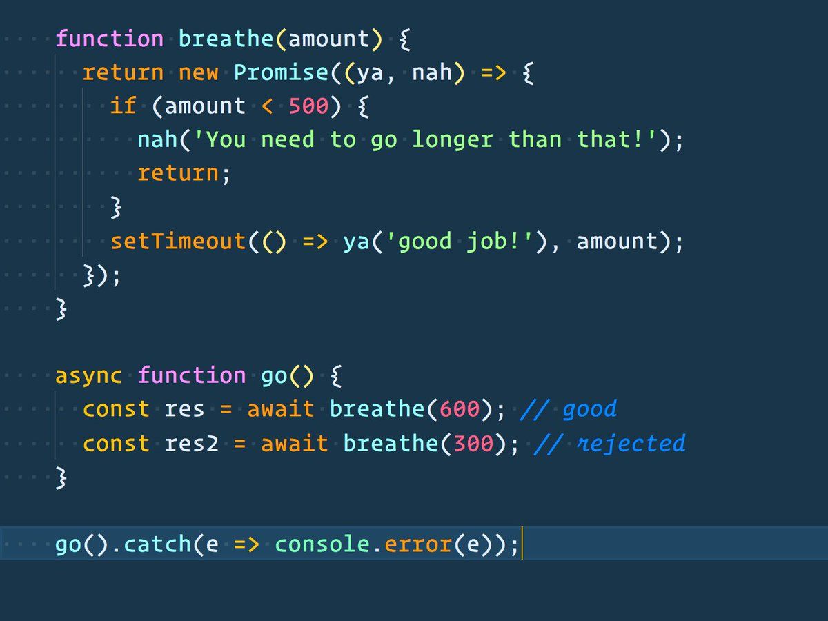 : 🔥 Async functions can chain a .catch() to catch any errors without a try/catch