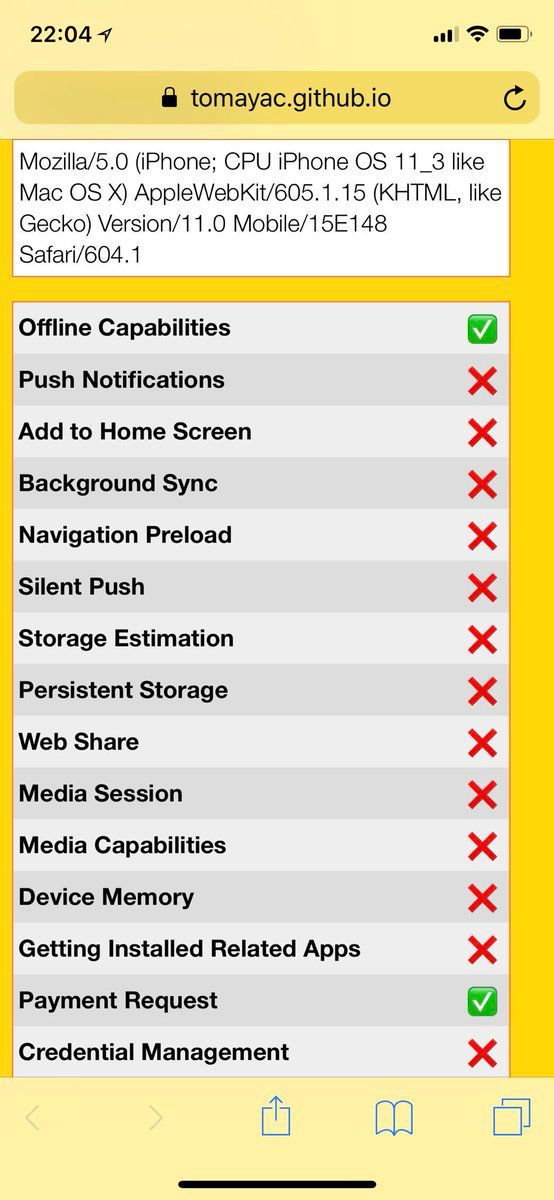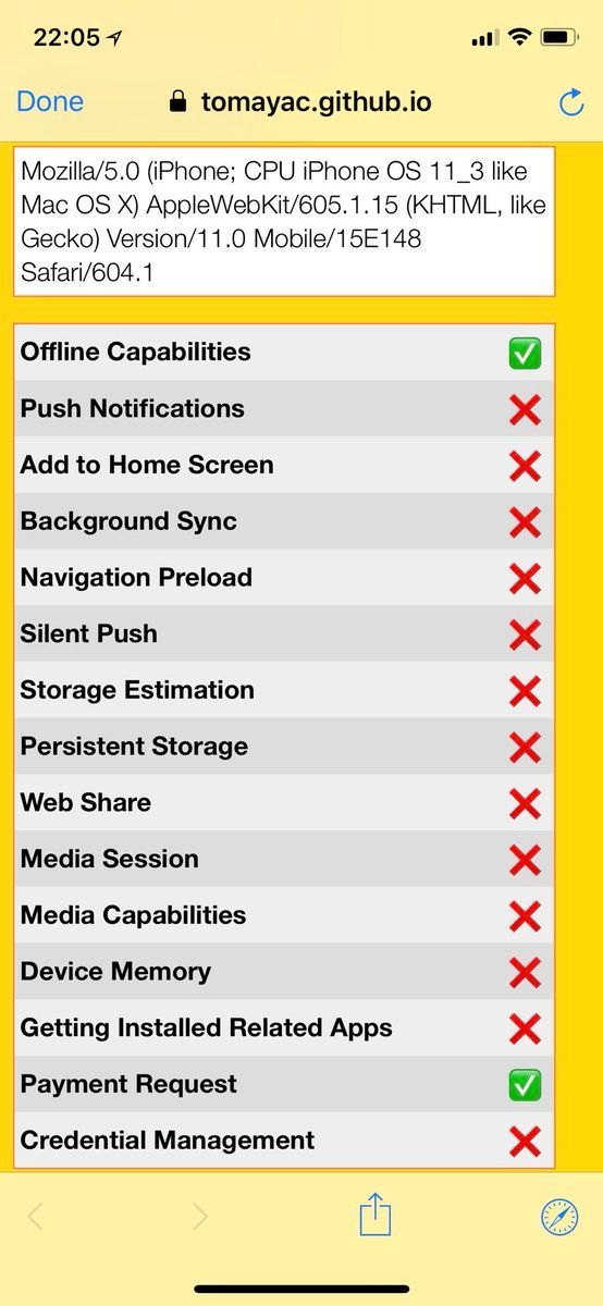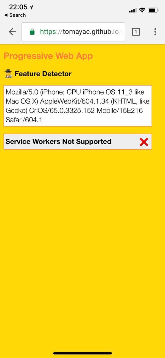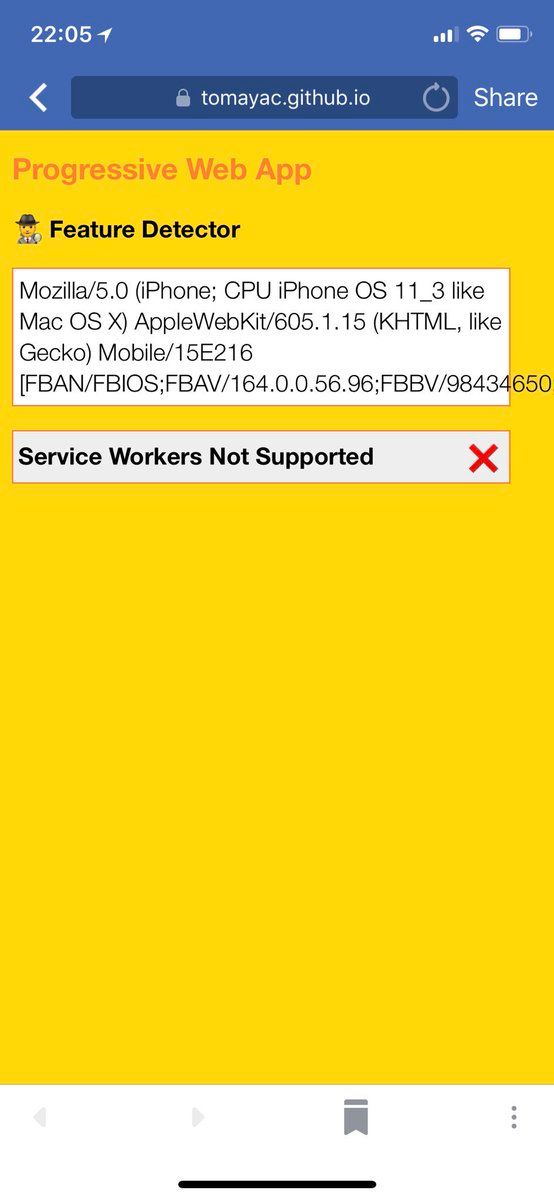 Just updated to iOS 11.3 final, Build 15E216. Happy to report that Service Workers are supported in… ✅ Safari ✅ SFSafariViewController …but sadly aren’t in… ❌ WKWebView. They were still in Beta 5’s WKWebView, and when I finished research.google.com/pubs/pub46739.html. Nevertheless: 🎉!