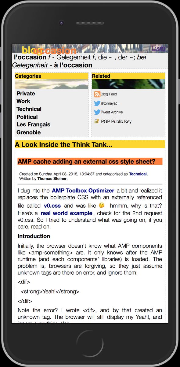 Ever 🤔 wondered why the ⚡️ @AMPhtml Toolbox Optimizer (github.com/ampproject/amp-toolbox/tree/master/optimizer) replaces the inlined boilerplate CSS with an externally referenced file called v0.css? My latest blog post has you covered: blog.tomayac.com/2018/04/08/amp-cache-adding-an-external-css-style-sheet-130437. 💡